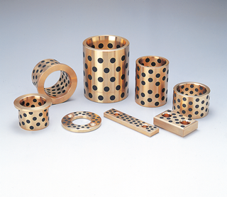 The Oiles 500B series are self-lubricating bearings for middle loads composed of cast bronze bases and embedded solid lubricant. Two types of base materials are available: 500B1 CAC406 (BC6) for general use and 500B2 CAC403 (BC3) for high temperatures.