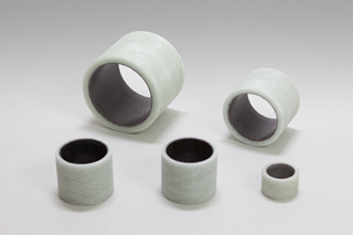 The Oiles FIBERFLON FW series incorporate polytetrafluoroethylene (PTFE) fibers and new-material fibers on the friction surfaces. The load-bearing back layer consists of highly strong epoxy resin with glass fibers.