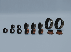 The Oiles TECHMET E are self-lubricating bearings composed of three layers: Special plastic layers, sintered bronze layers, and back metals.